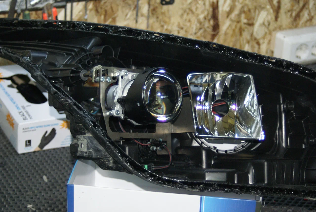 После завершения работ фары надежно закрываются профессиональным бутиловым герметиком, защищающим их от проникновения влаги и пыли